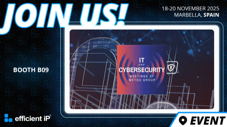 Join us at IT & Cybersecurity Meetings Espaรฑa 2025EfficientIP is excited to announce its first participation at IT & Cybersecurity Meetings Espaรฑa. Join us from November 18 to 20, 2025, at the Palacio de Ferias, Congresos y Exposiciones de Marbella to discover how our innovative DNS-DHCP-IPAM (DDI) solutions...